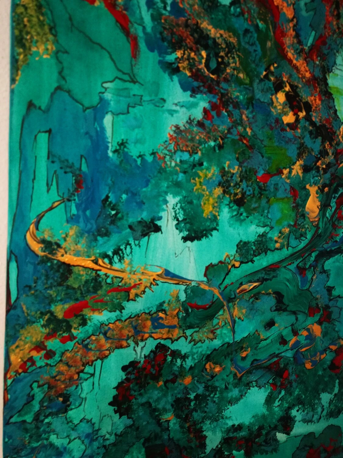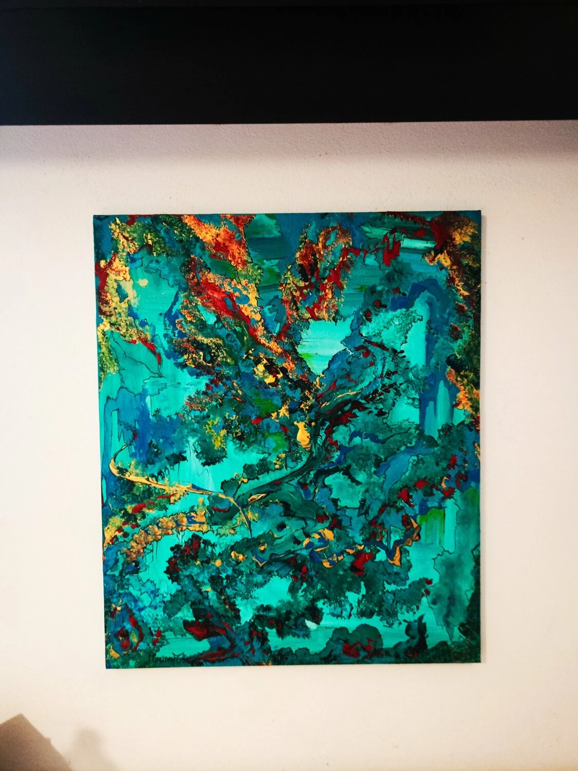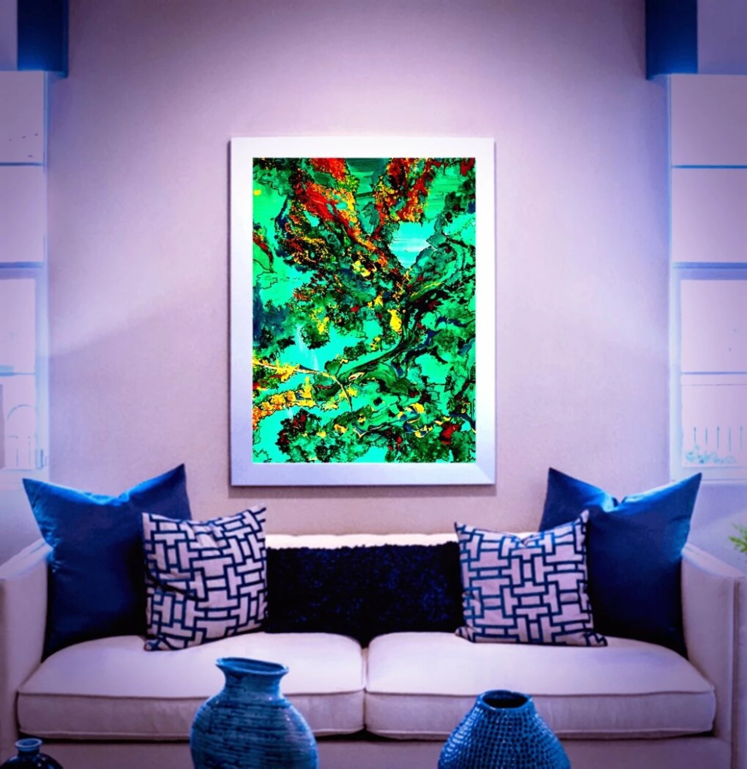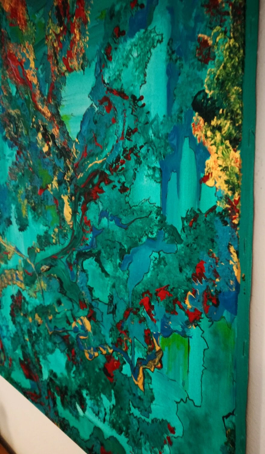 In questo dipinto ho voluto catturare l’energia nascosta della natura, un equilibrio fragile tra caos e armonia. I verdi profondi mescolati all’inchiostro indiano creano un gioco metafisico di movimento e silenzio. Ogni tratto esprime il tumulto interiore e la serenità, portando nelle vostre case una forza vitale che invita alla riflessione e al risveglio emotivo.