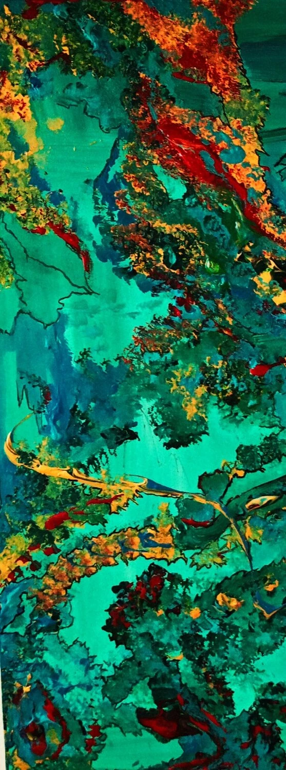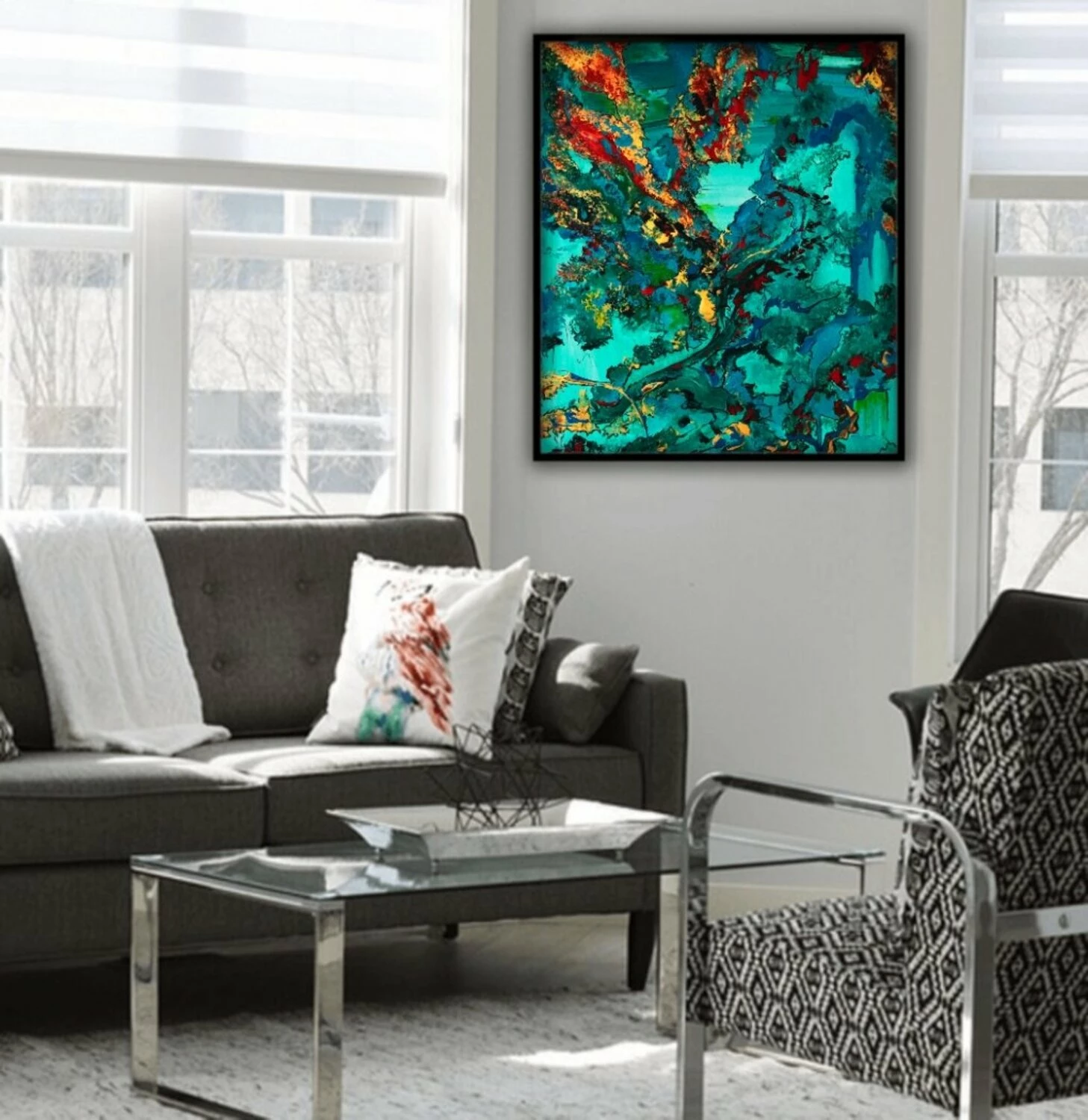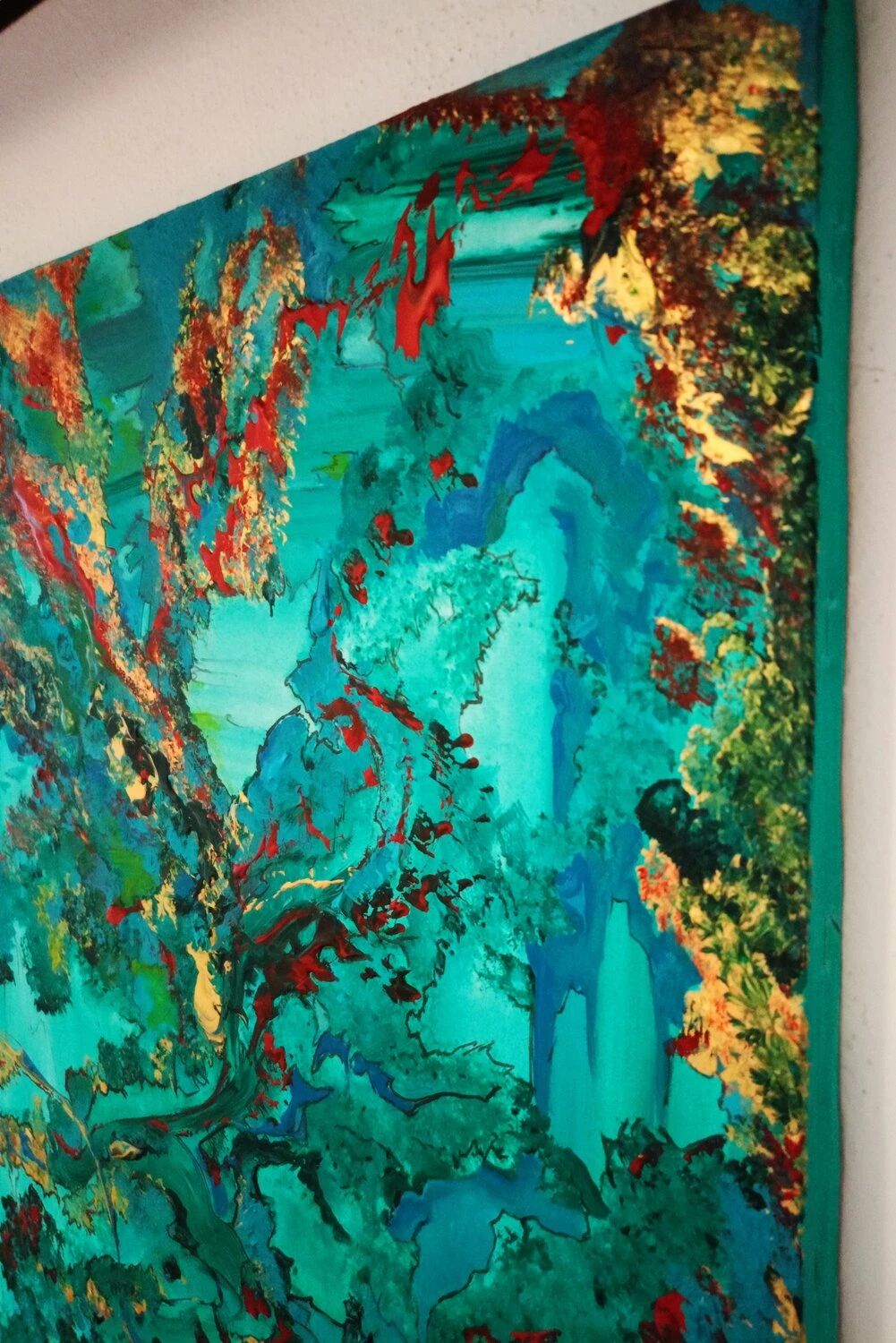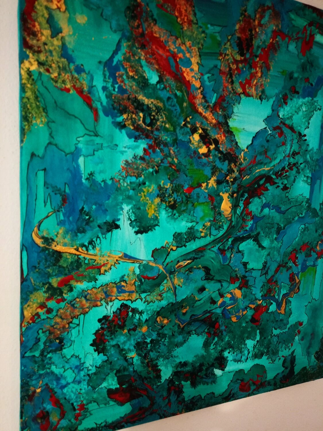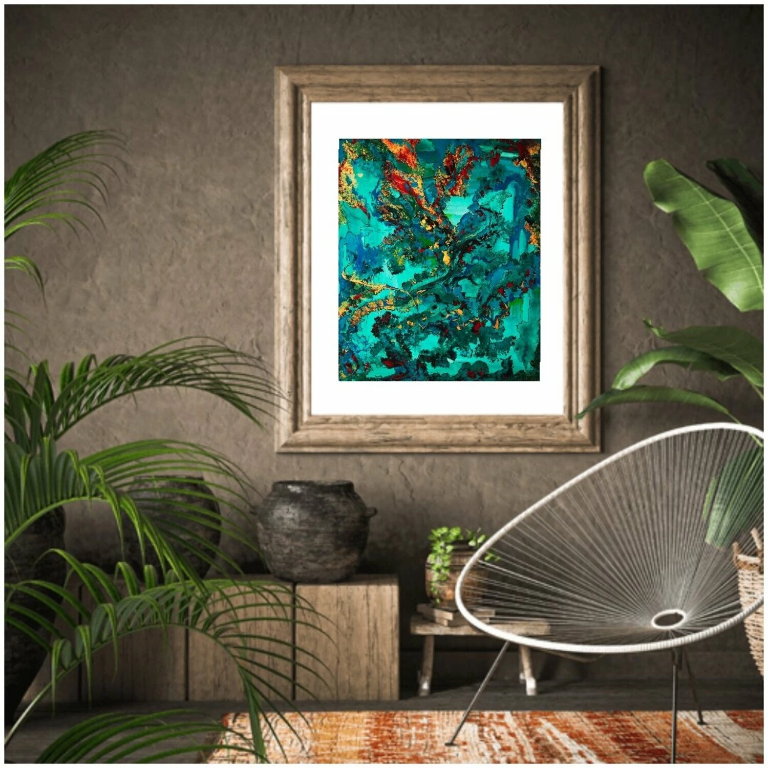 In questo dipinto ho voluto catturare l’energia nascosta della natura, un equilibrio fragile tra caos e armonia. I verdi profondi mescolati all’inchiostro indiano creano un gioco metafisico di movimento e silenzio. Ogni tratto esprime il tumulto interiore e la serenità, portando nelle vostre case una forza vitale che invita alla riflessione e al risveglio emotivo.