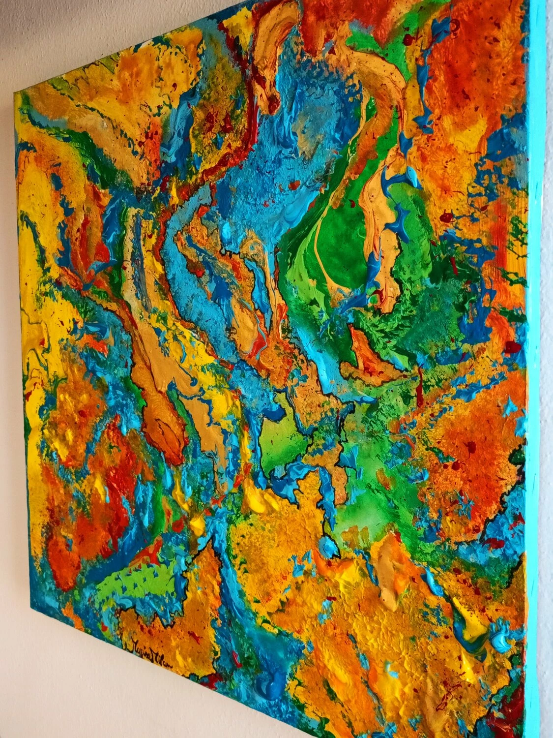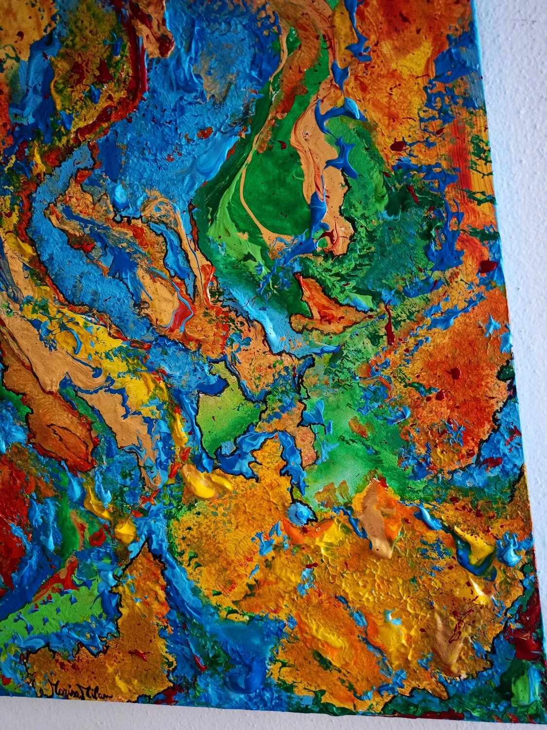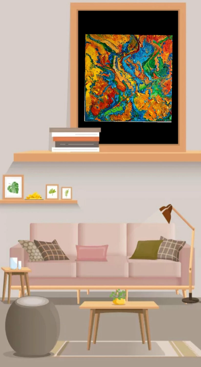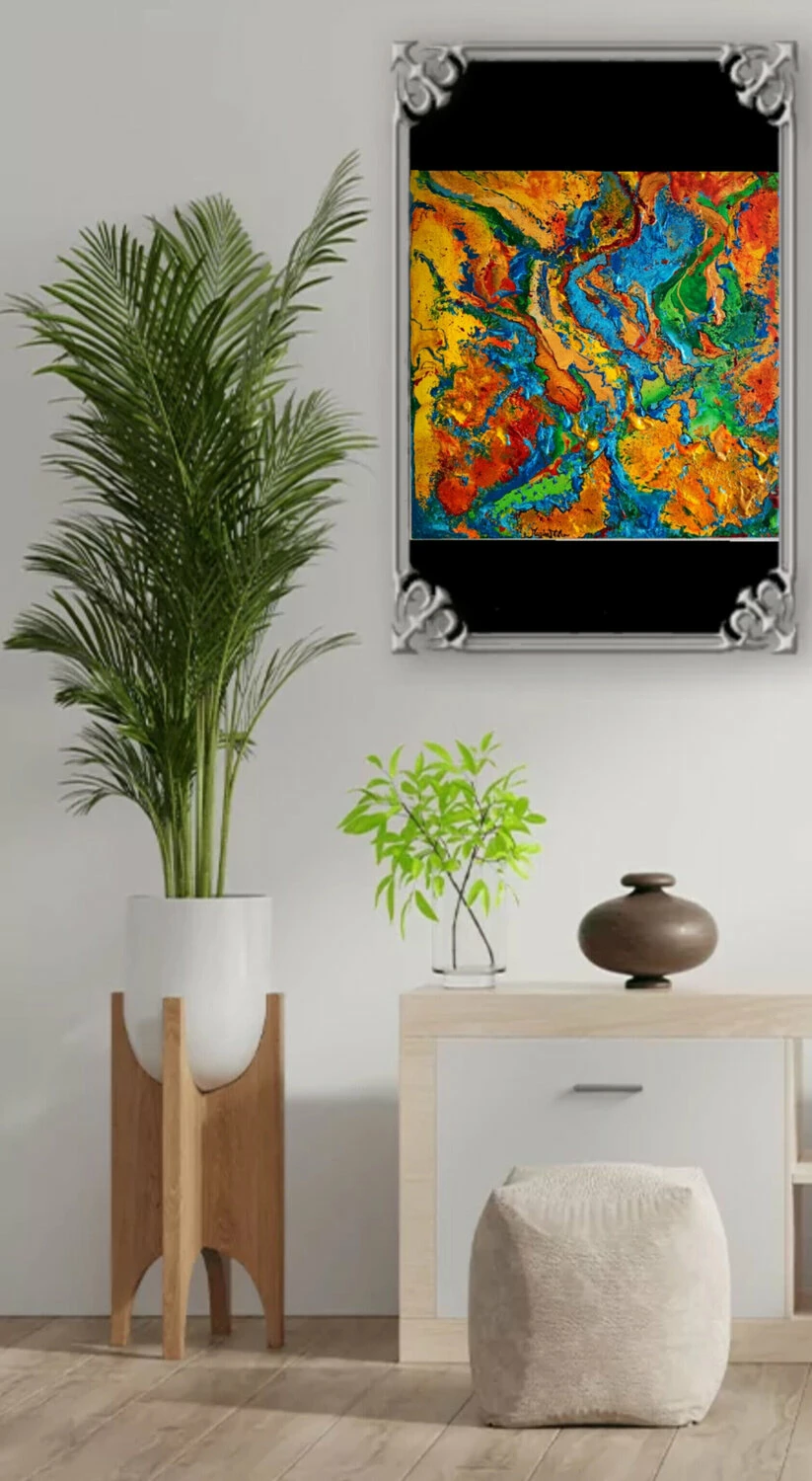 Nel creare questa opera, ho cercato di catturare un’essenza quasi eterea, un ponte vibrante tra il visibile e l’invisibile. Usando l’acrilico, ho esplorato la tensione e l’armonia tra i colori audaci e le forme fluide, evocative di paesaggi sognanti e infinite possibilità. Ogni pennellata riflette una danza tra realtà e fantasia, invitando chi guarda a perdere il proprio sguardo tra le intricate maglie di colori e emozioni. Quest’arte porterà un energia vivace e stimolante in ogni spazio, incitando alla riflessione e all’immaginazione