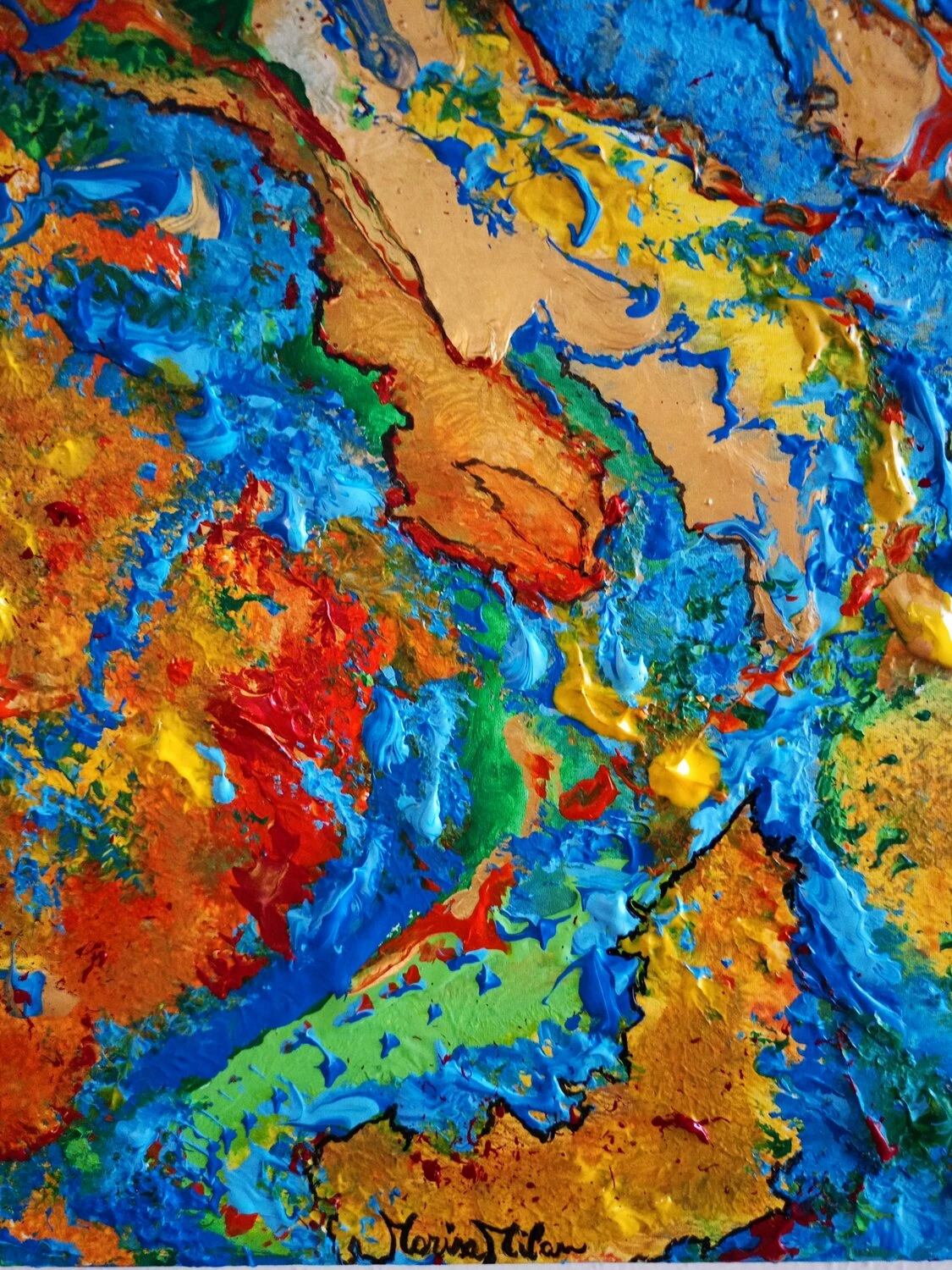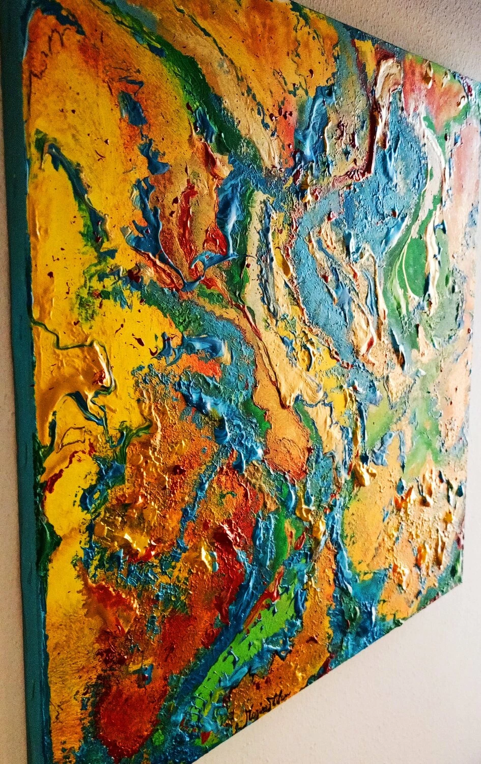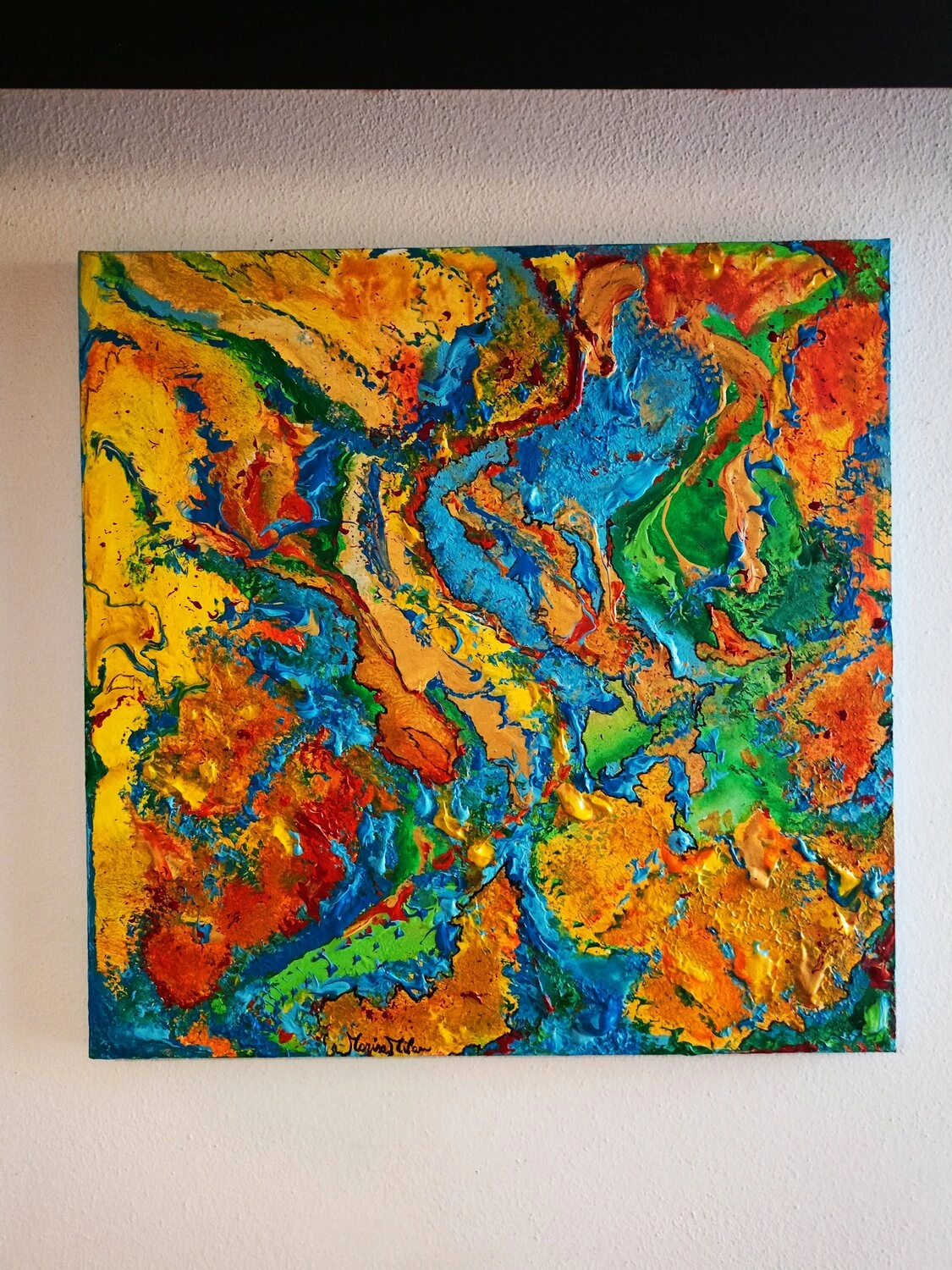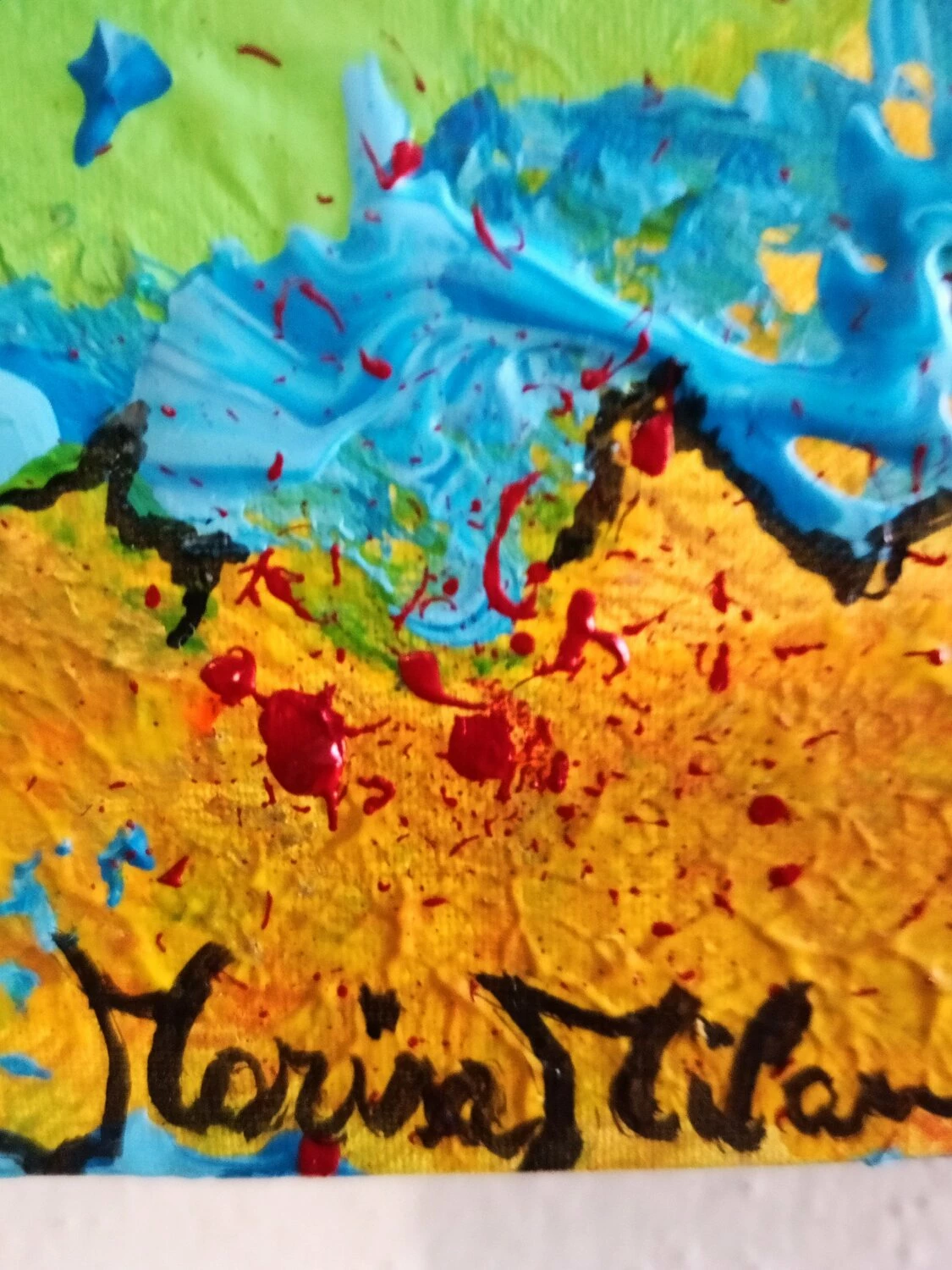 Nel creare questa opera, ho cercato di catturare un’essenza quasi eterea, un ponte vibrante tra il visibile e l’invisibile. Usando l’acrilico, ho esplorato la tensione e l’armonia tra i colori audaci e le forme fluide, evocative di paesaggi sognanti e infinite possibilità. Ogni pennellata riflette una danza tra realtà e fantasia, invitando chi guarda a perdere il proprio sguardo tra le intricate maglie di colori e emozioni. Quest’arte porterà un energia vivace e stimolante in ogni spazio, incitando alla riflessione e all’immaginazione